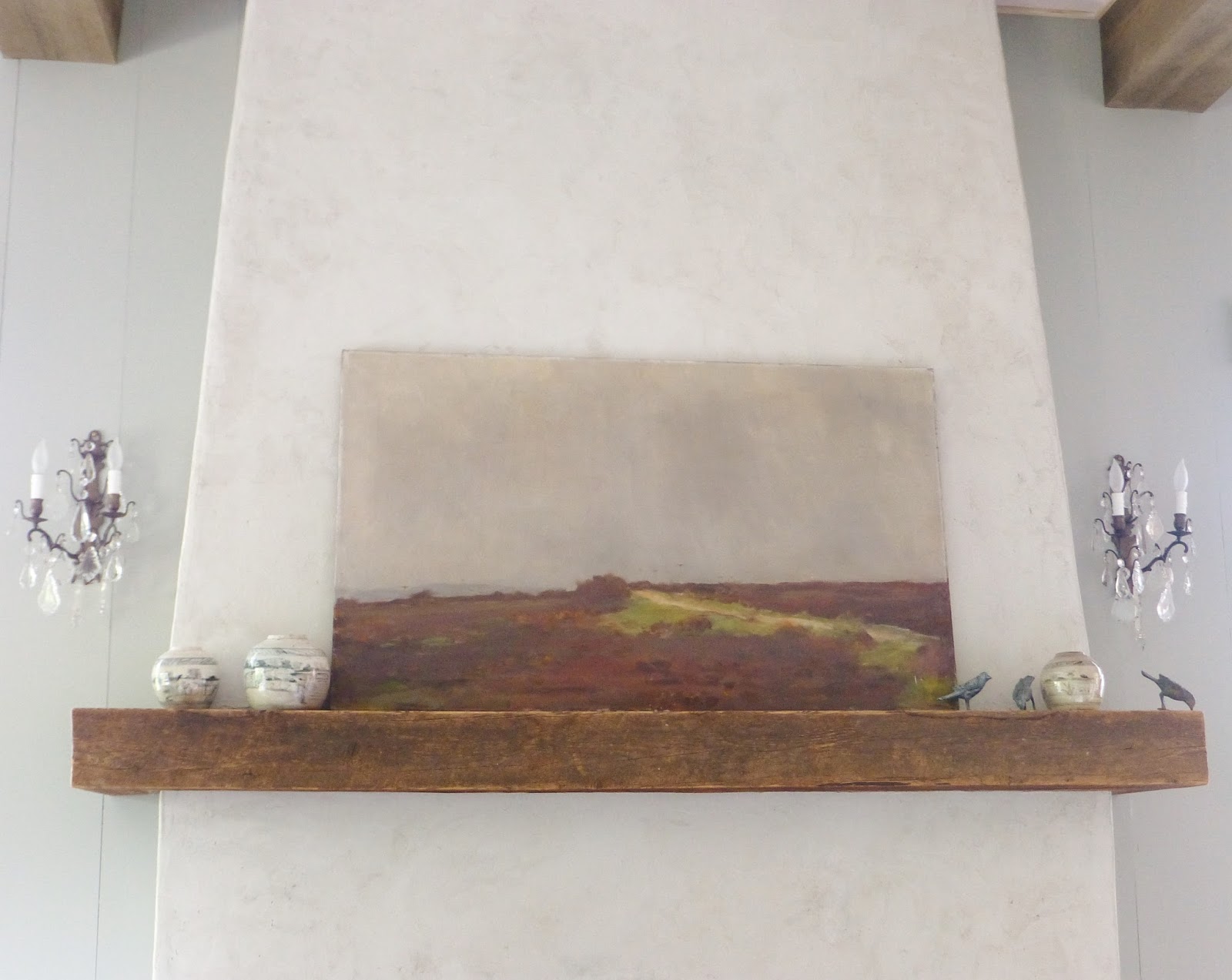They chose the barn room, so here are a couple of summer photos from this year. I added several antique Canton ginger jars to the mantel. The painting under the glaze on the jars is very muted, almost washed out compared to the stronger blue and white colors you would normally expect to see. The muted tones work well in the room, especially with the antique oil painting.