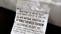 The white "law" label that is sewn into the border of the mattress, gives the appointment of manufacture.
